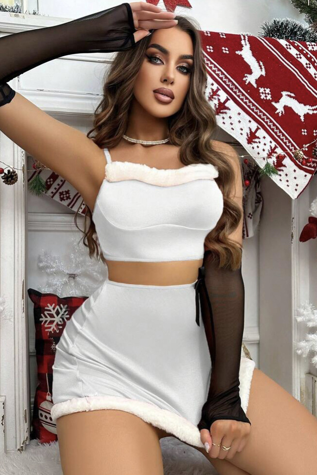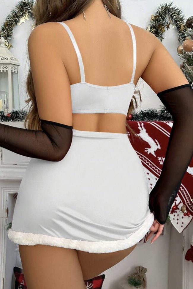 Set lenjerie intima format din 4 piese: top, chilot, fusta si manusi.