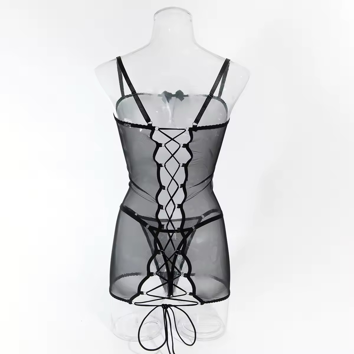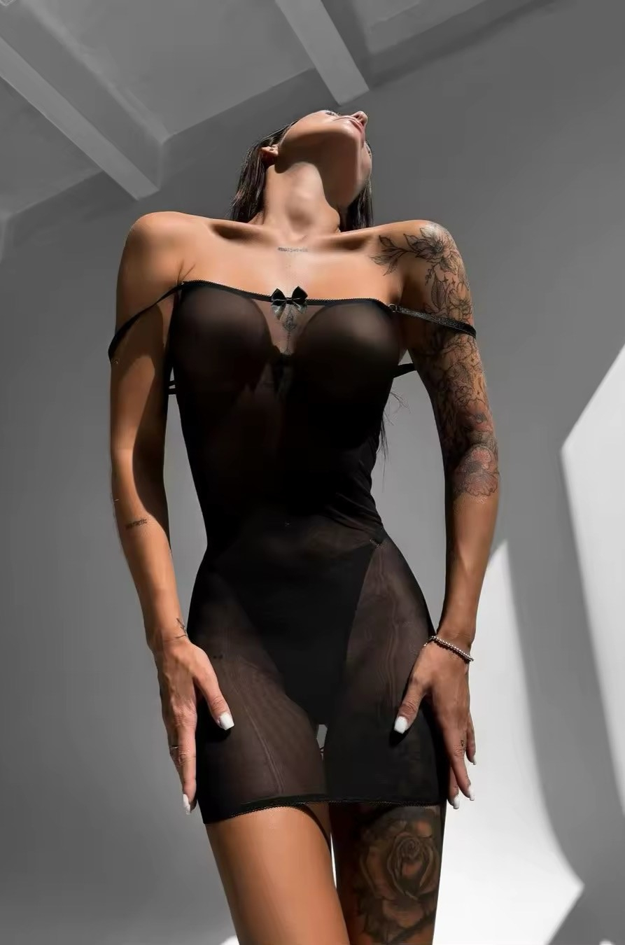 Această rochie neagră este perfectă pentru o seară de neuitat, combinând eleganța cu un strop de senzualitate. Decupajul la spate, completat de un șnur ce subliniază talia, creează un look sexy și sofisticat. Rochia se îmbină perfect cu chilotul tanga, care adaugă un plus de confort și intimitate, fără a compromite stilul. Ideală pentru evenimente speciale, aceasta îți va pune în valoare silueta într-un mod rafinat și seducător.